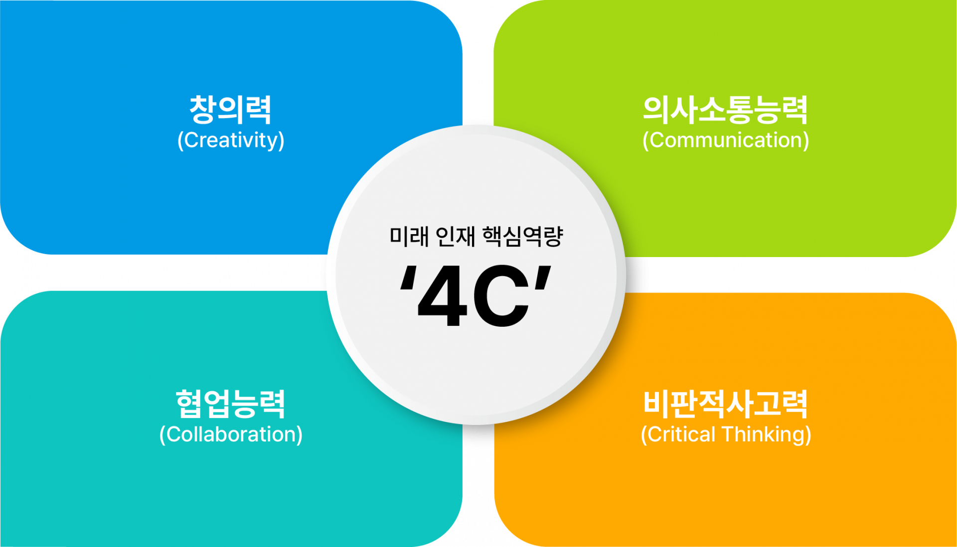 - 창의력(Creativity), 의사소통능력(Communication), 비판적사고력(Critical Thinking),